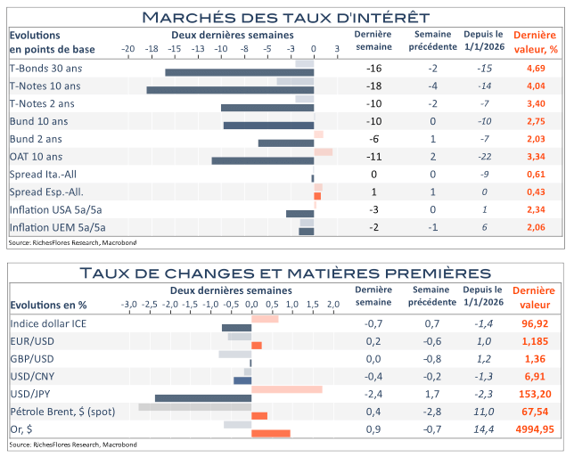 Le scénario de début d’année (dollar plus faible, pression sur certains taux, soutien marqué des métaux) a été brutalement remis en question.
